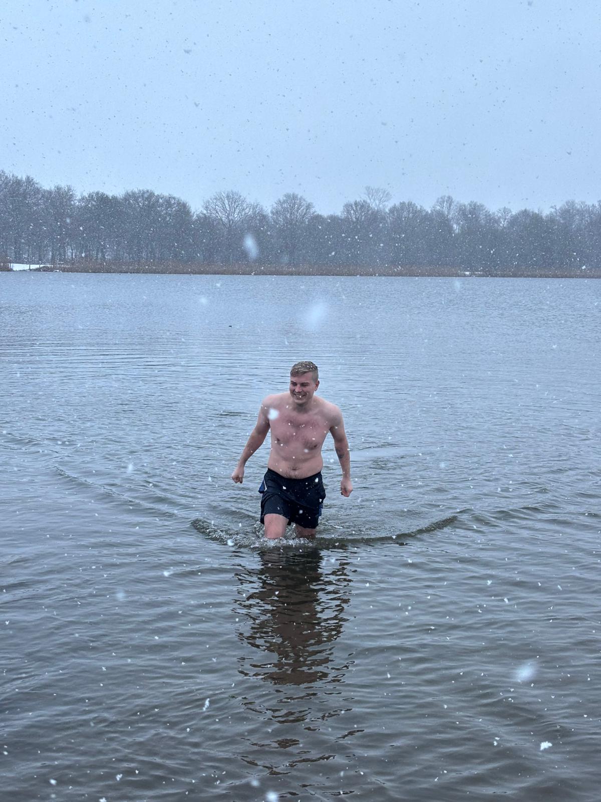 Het was eeeeeeeeeecht een crazy ochtend. Laizor was mee en het sneeuwde. Helaas geen Don. Was er wel in gedachte bij. Paar extra mensen die gingen zwemmen (Die bleven er ook maar 3 mins in). Geen last van gehad. Water voelde zelfs makkelijker aan dan de week ervoor. Geen gekke sauna sessie.